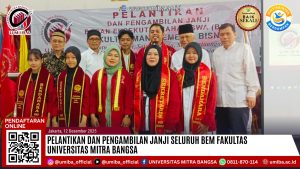 Pada tanggal 12 Desember 2025, Universitas Mitra Bangsa (UMIBA) menyelenggarakan acara pelantikan dan pengambilan janji seluruh Badan Eksekutif Mahasiswa (BEM) Fakultas, meliputi