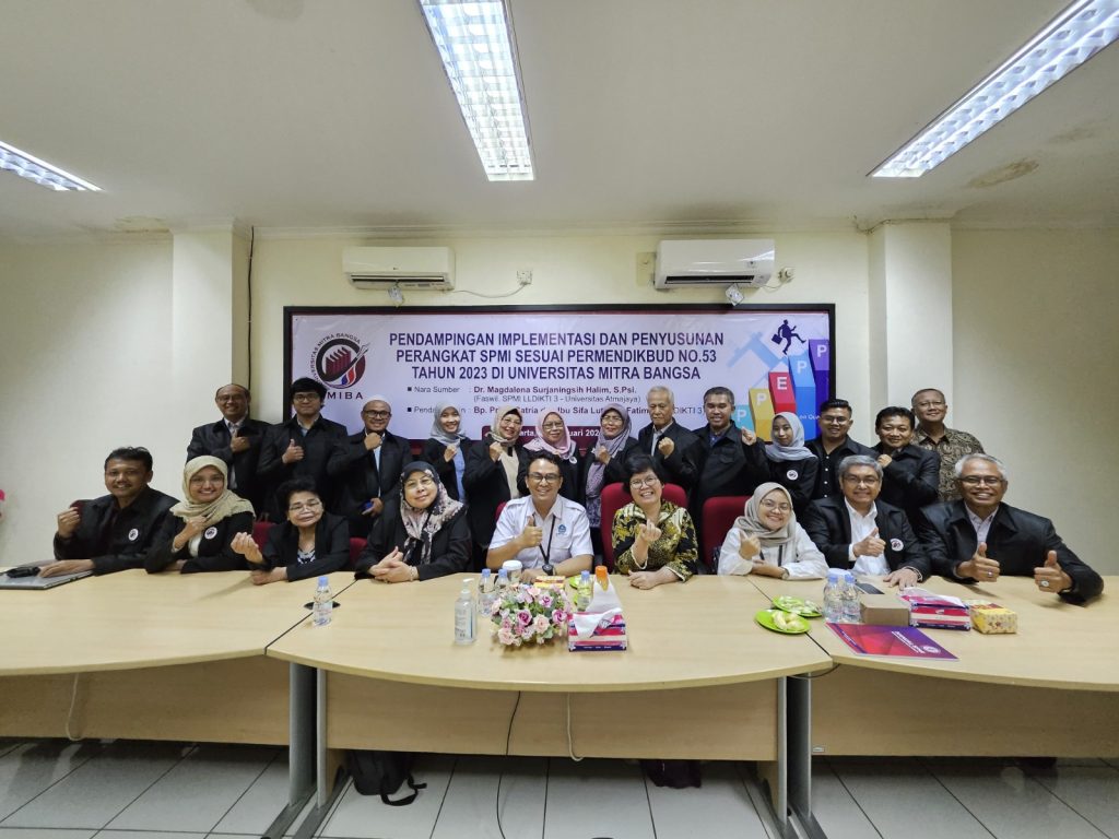 Jakarta – Universitas Mitra Bangsa melaksanakan bimtek bertajuk Pendampingan Implementasi dan Penyusunan Perangkat Sistem Penjaminan Mutu Internal (SPMI) Sesuai Permendikbud No.53 Tahun 2023 pada hari Rabu (19/2/2024) yang bertempat di ruang rapat kampus UMIBA yang terletak di Pasar Minggu, Jakarta Selatan. Kegiatan ini menghadirkan nara sumber dari Faswil SPMI LLDIKTI 3 – Universitas Atmajaya, Dr. […]